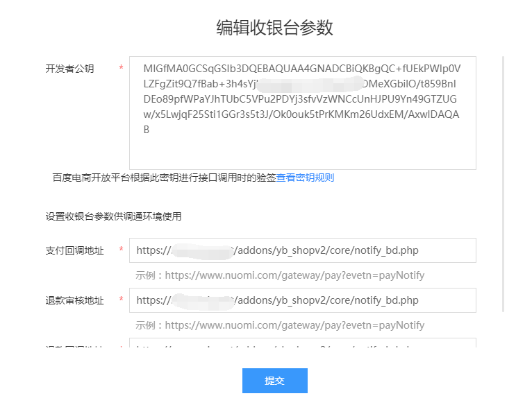 同时填写支付回调和退款相关的地址,统一填写