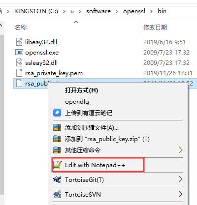 三、使用工具将生成的公钥文件【rsa_public_key.pem】打开,执行全选复制操作