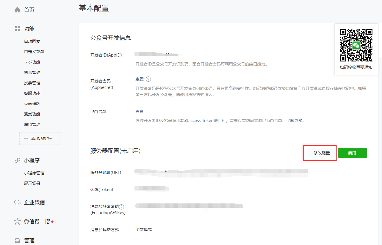 配置已完成,接下来可以设置公众号菜单和消息回复了,如果提示公众号故障,请检查一下配置信息的https及公众号是否授权给了第三方平台。