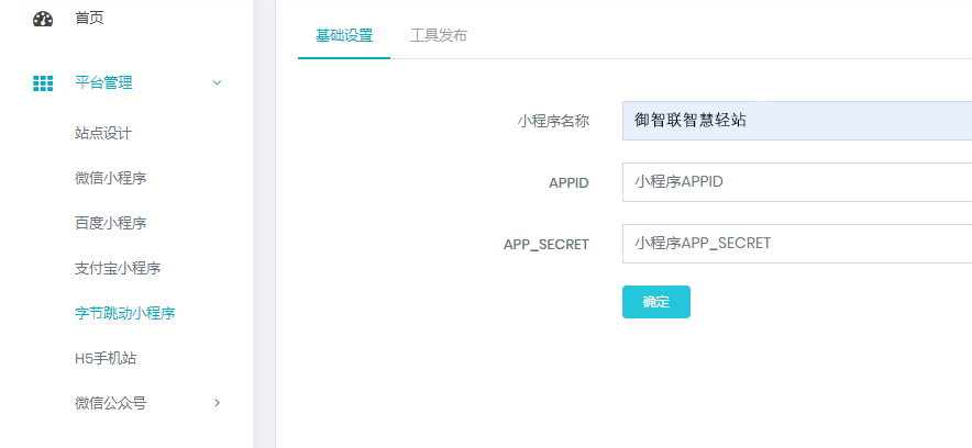 登录后台可以看到需要填写小程序名称、APPID和APP_SECRET