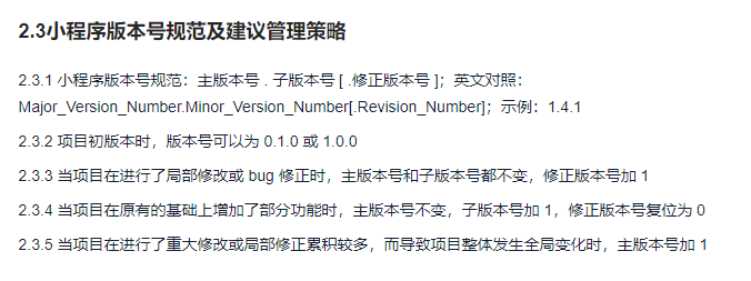 提示:小程序版本号需按照官方要求填写