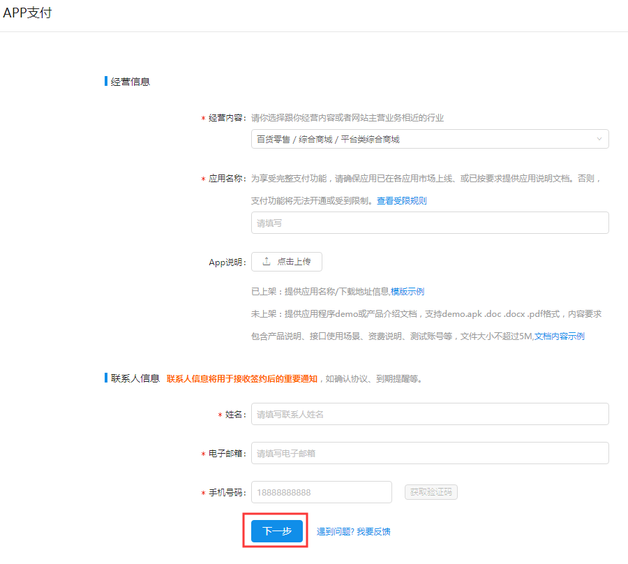 填写应用相关信息提交即可