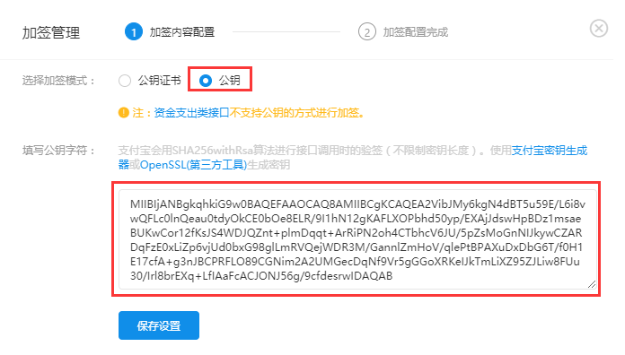 三、根据工具生成的密钥,填写支付宝支付相关信息