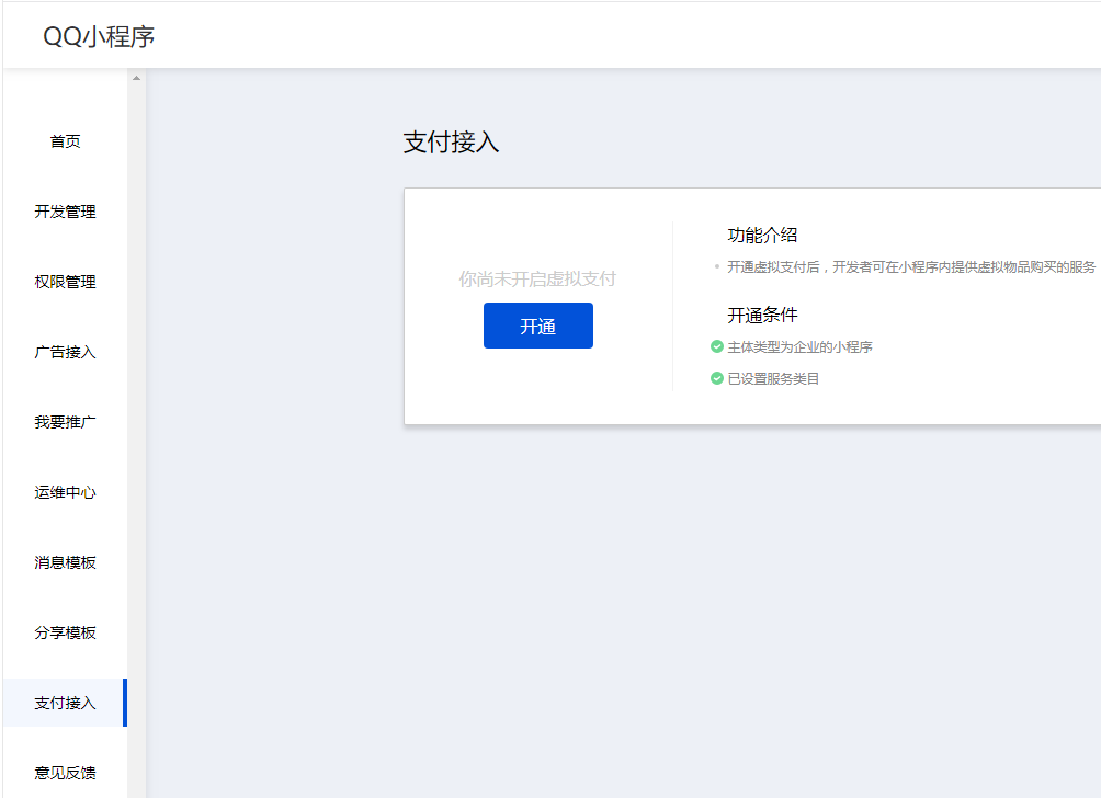 一、开通QQ小程序【支付接入】(如果已开通QQ钱包支付功能,只需添加绑定即可)