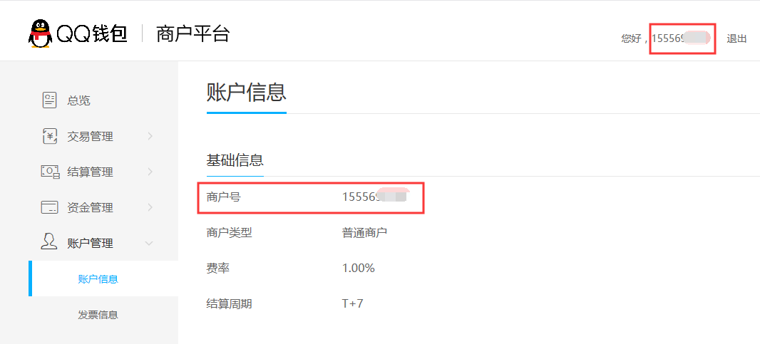 登录【QQ钱包-商户平台】,点击【账户管理】-【账户信息】可看到商户号信息。