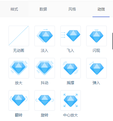 第二步:选中模板(右侧出现具体编辑项),可通过样式、数据、风格、动效对模板进行编辑。