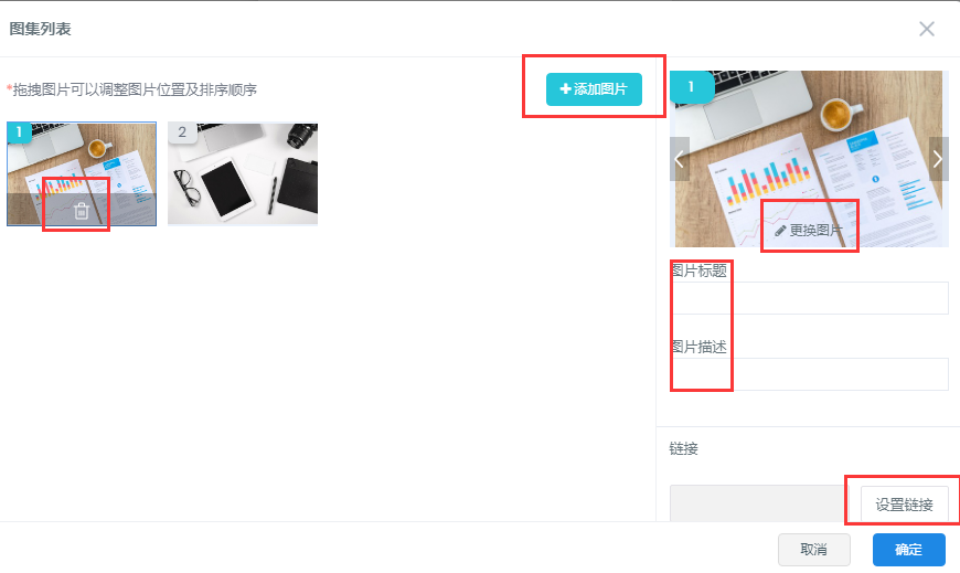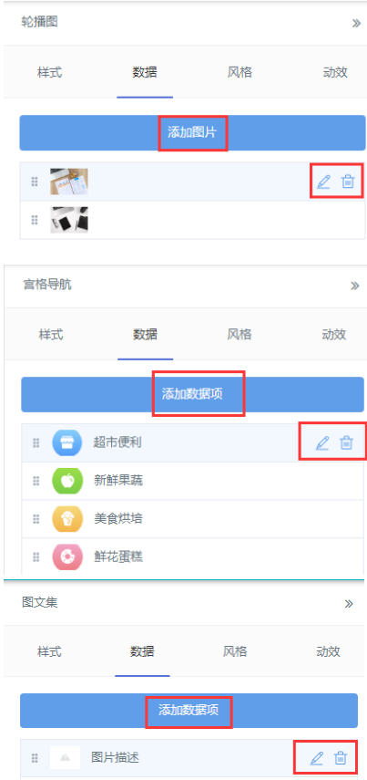 轮播图、魔方导航、图文集数据设计的时候可根据下方标注进行操作