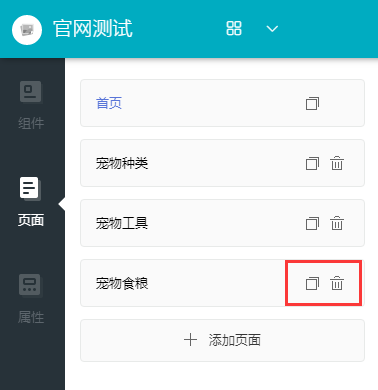 第二步:添加页面成功后,选中已经添加的页面(自定义页面)。