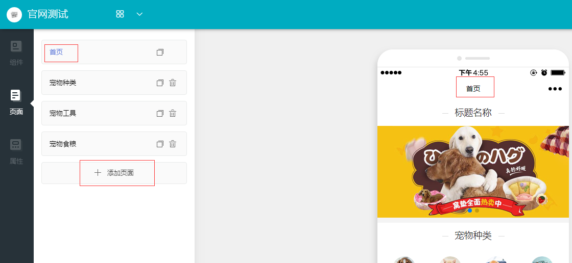 ****此时可以清楚的看到选中的是首页,在设计模板也显示的是首页