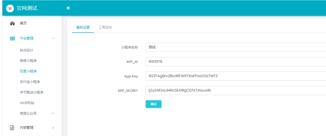 (APP_ID、APPKey、APP_SECRET数据获取可参考一、御智联智慧轻站操作手册的百度小程序相关)
