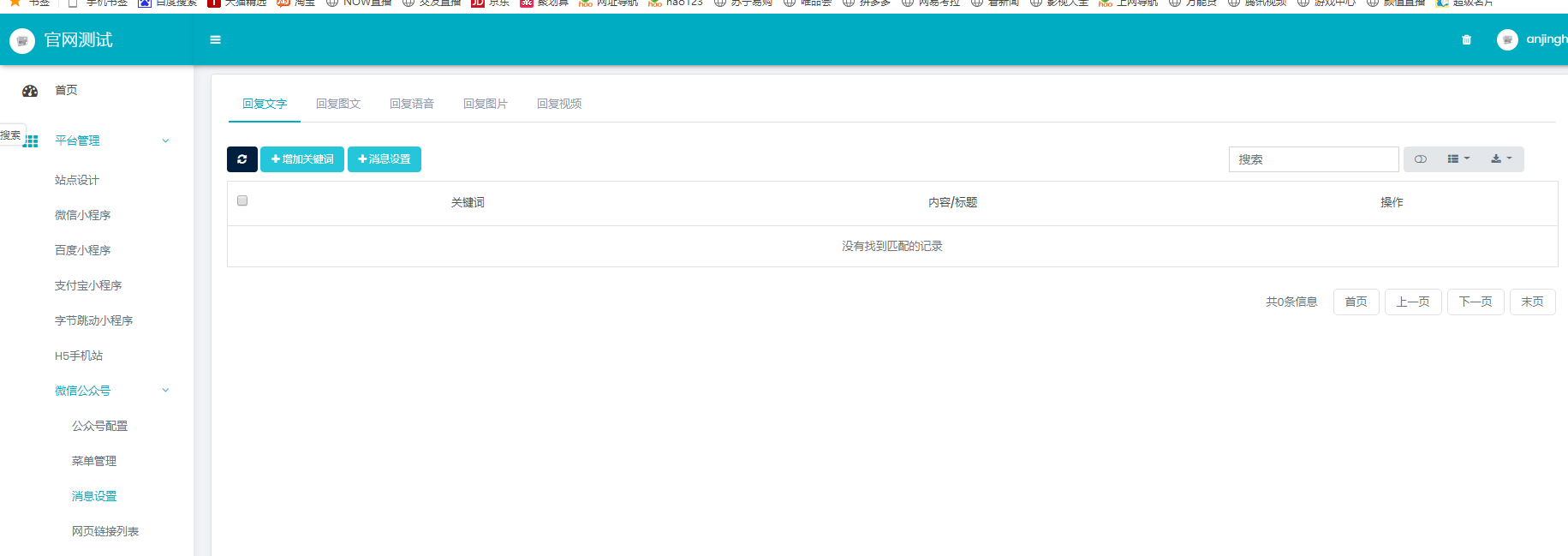 消息设置 增加的关键字 可以在菜单中使用 对应菜单填写关键字 当手机上点击这个菜单时 就会触发这个关键字设置的内容