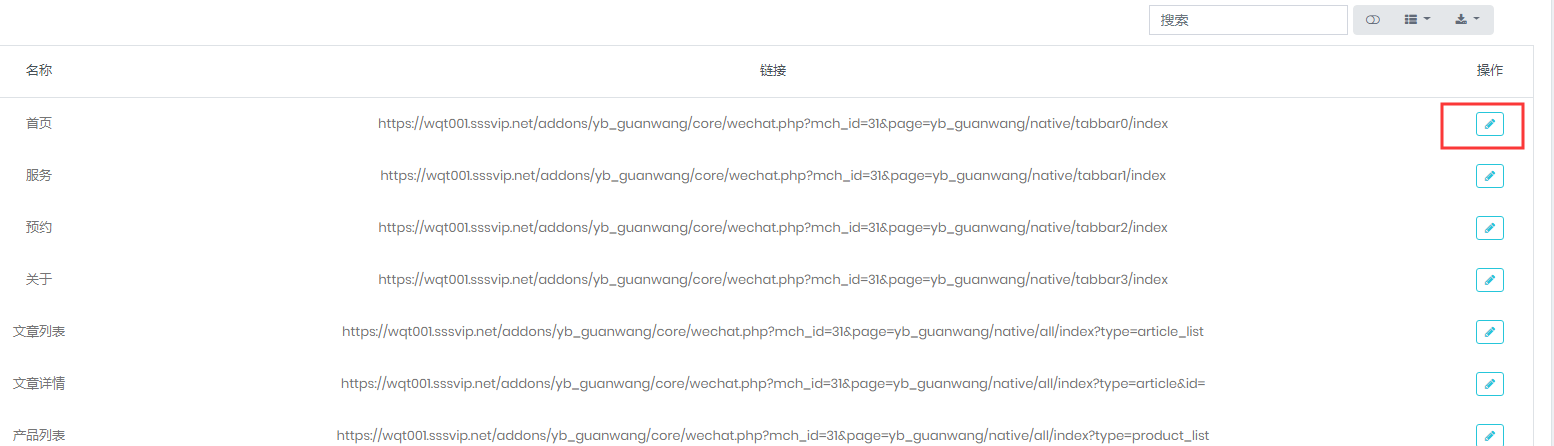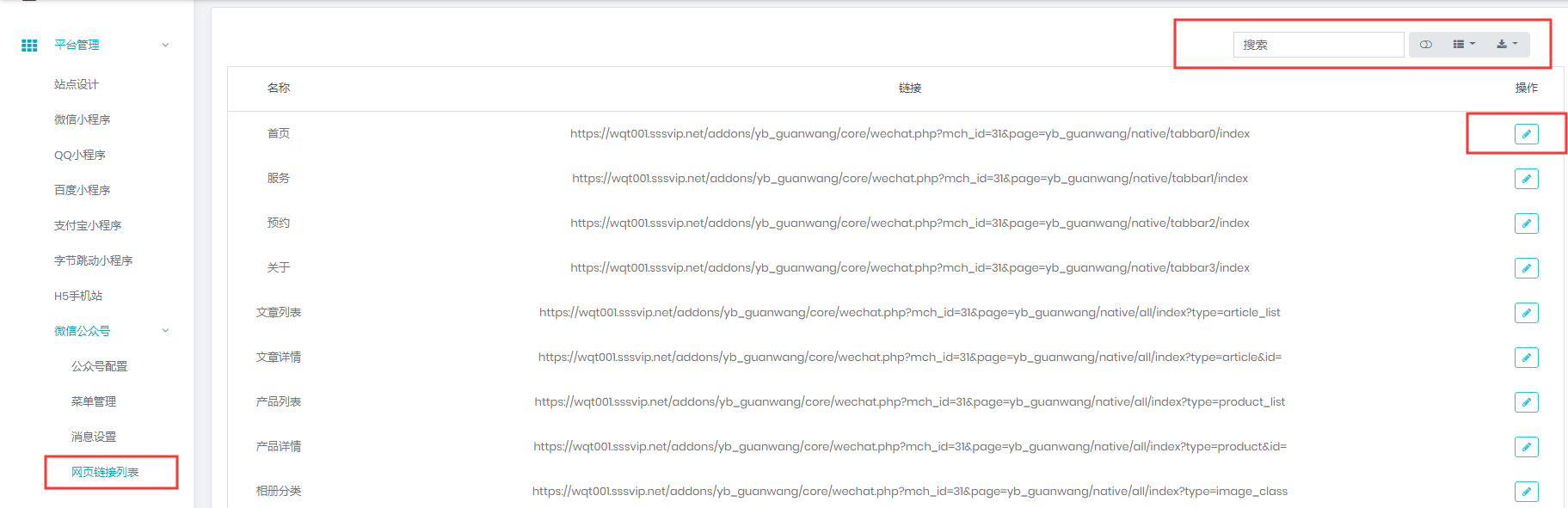 站点设计里所添加的所有页面都可以在此页面查看网页链接,可以通过每个链接后的操作工具进行复制