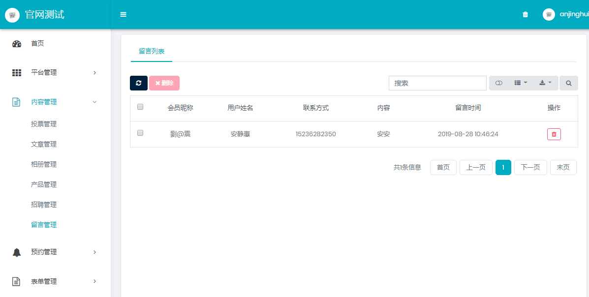 3.5、留言管理