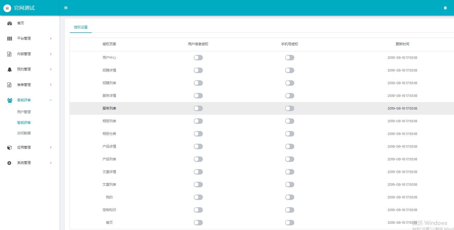 具体页面授权,此操作的作用是开启授权后用户访问到此界面会弹出授权信息进行授权,根据小程序DIY的模板进行设计