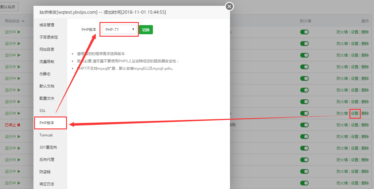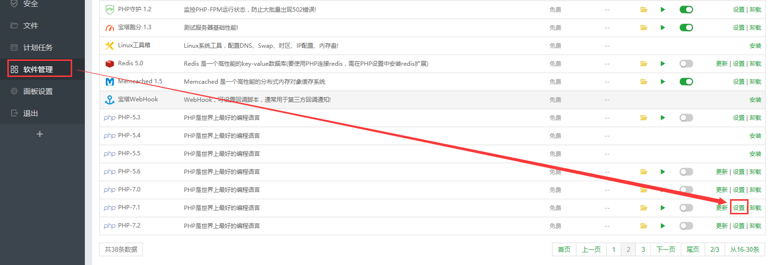 打开软件管理页面,找对对应的PHP设置