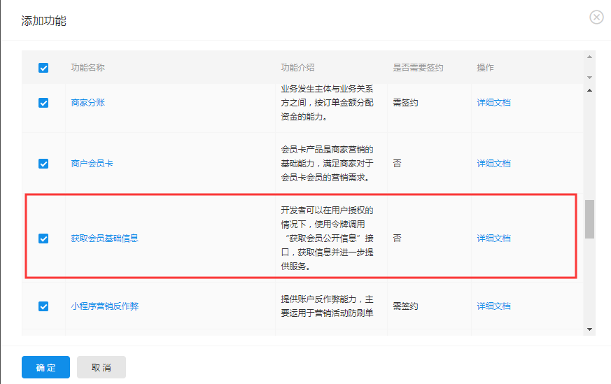 解决办法:登录支付宝小程序开发者中心,进入对应的小程序,在首页的“功能模块”点击“添加功能”按钮,选择“获取会员基础信息”,确定即可