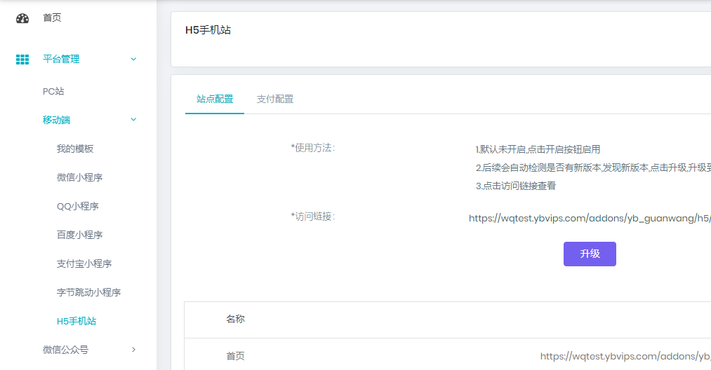 公众号页面和H5手机站共用升级功能,打开H5手机站页面,点击【升级】按钮即可