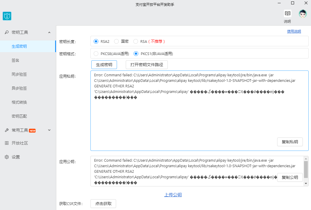 支付宝小程序密钥生成乱码