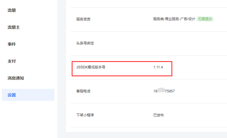 二、将字节跳动小程序开放平台“设置”页面的JSSDK最低版本号调整为4位数以上,如1.11.4