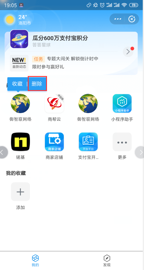 打开支付宝APP首页的“更多”菜单,打开最近使用的“我的小程序”页面,删除体验版浏览记录即可