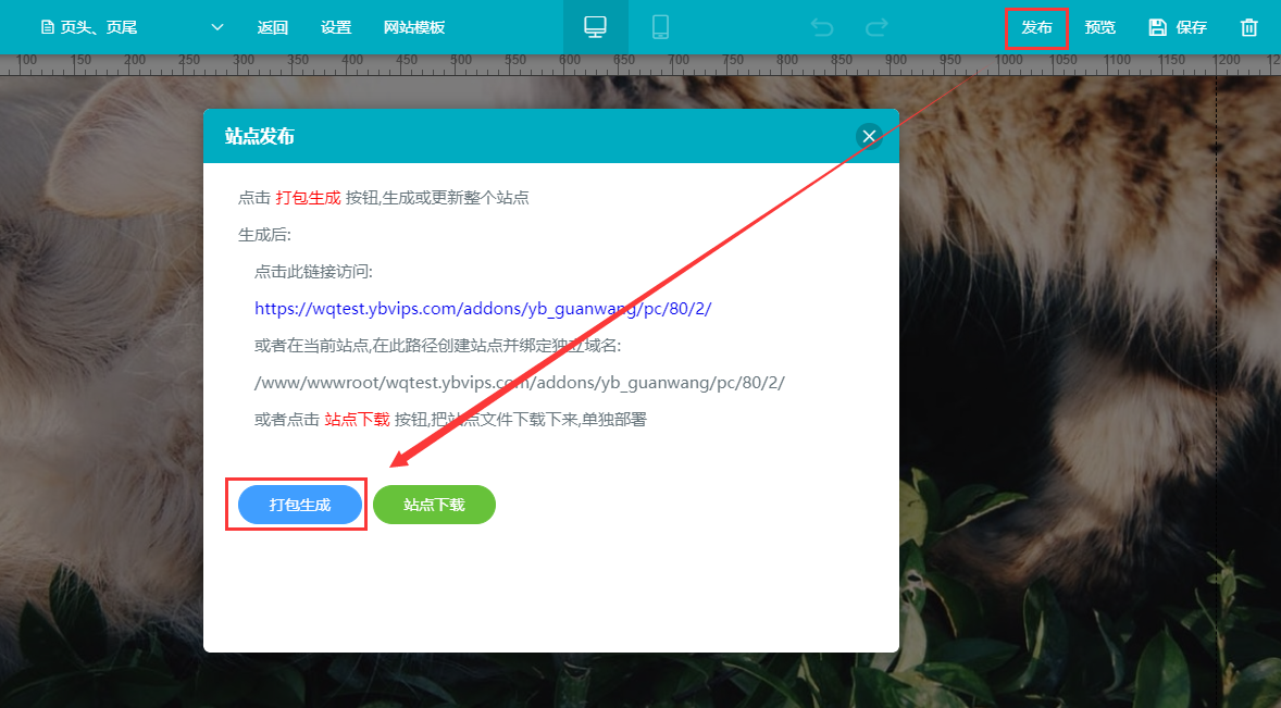 六、打开轻站后台PC模板编辑页面,将模板打包生成