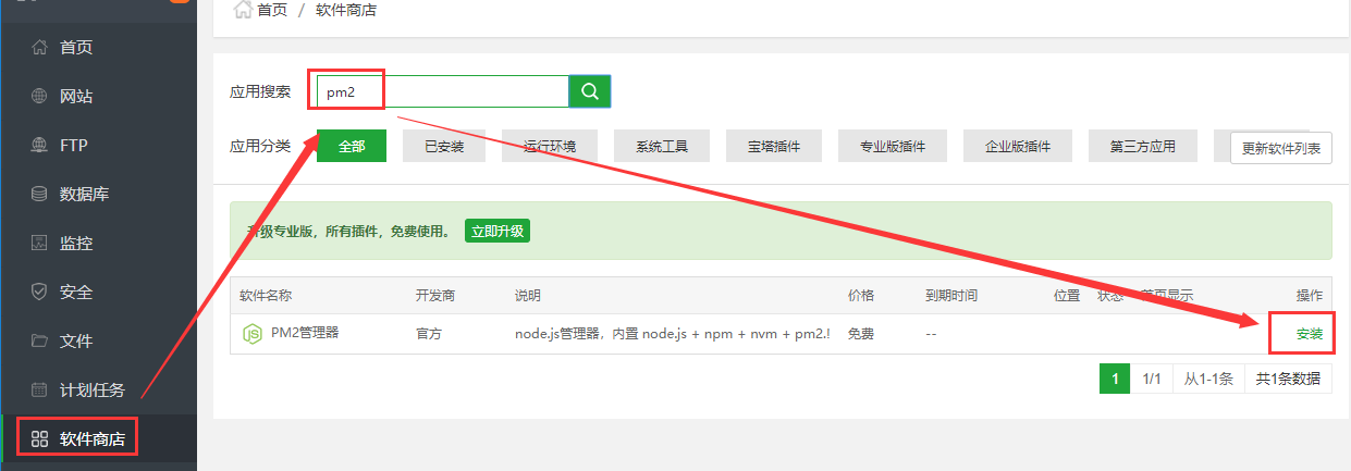 二、打开宝塔面板【软件商店】搜索【pm2】,然后安装