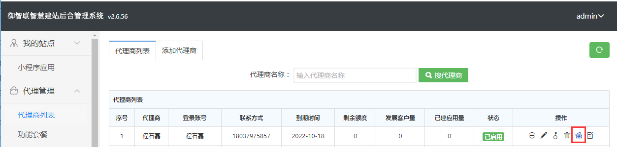 一、在代理商列表,点击充值按钮