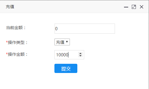 二、输入充值金额,提交保存即可(如何金额输错多充值的话,也可以进行减值操作)