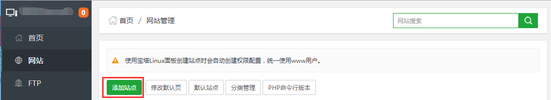 一、下载系统框架安装包,登录宝塔,新建站点绑定域名,注意php选择5.6或7.1