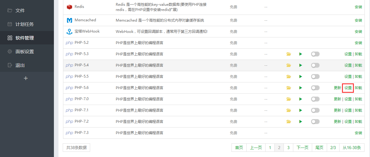 宝塔面板可以直接打开软件管理页面,找到PHP5.6,点击设置