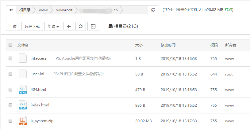 二、然后将安装包上传至新建站点的根目录下(解析域名、ssl域名证书配置需自行配置)