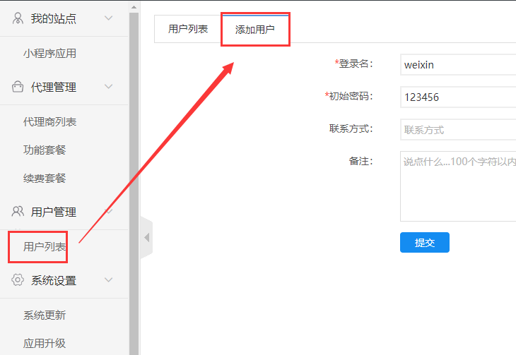 一、登录独立版系统后台,打开有【用户列表】-【添加用户】